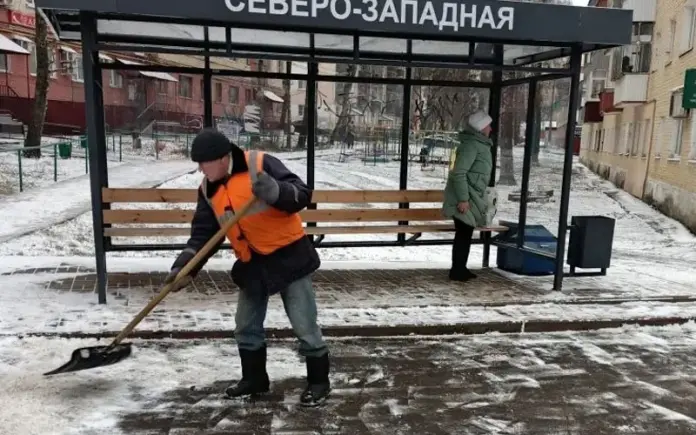 Кроме того, идет противогололедная обработка остановок, пешеходных переходов и тротуаров.