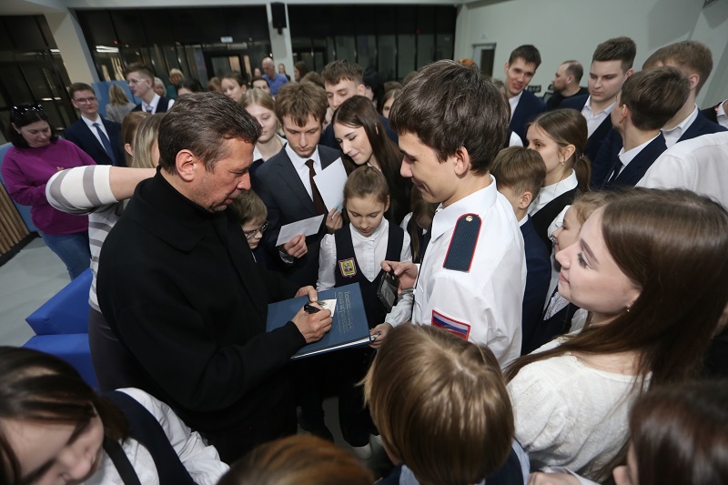 Основная тема встречи со школьниками — чтение, книги. Гость вспомнил о книге из детства, которая произвела на него сильное впечатление.