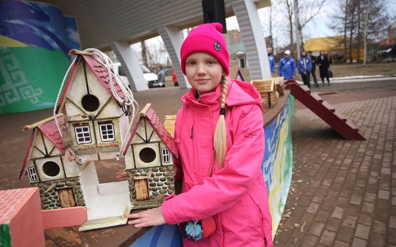 Работы представлены в 8 номинациях: «Креативный дизайн», «Экодом», «Арт-дворец», «Национальный колорит», «Птичья многоэтажка», «Лучший фото-, видеорепортаж», «Сувенирный скворечник», «Резной узор». Здесь вам и избушка на курьих ножках, и сундучок, и огромный маяк. Вот это фантазия у ребят!