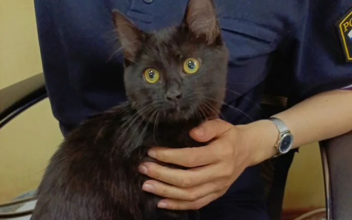 В понедельник утром приставы отреагировали на просьбы о помощи и организовали спасательную операцию. На выручку пришли специалисты, которые спустили котенка на землю.