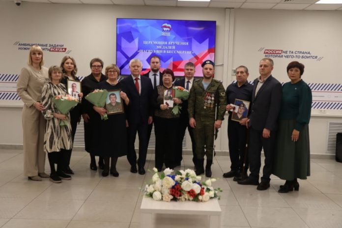 Медали «Шагнувши в бессмертие» вручили семьям военнослужащих, героически погибших в ходе специальной военной операции. Они стали символом безграничного уважения и вечной памяти о тех, кто отдал свою жизнь за Родину. Церемония прошла в штабе общественной поддержки партии «Единая Россия».