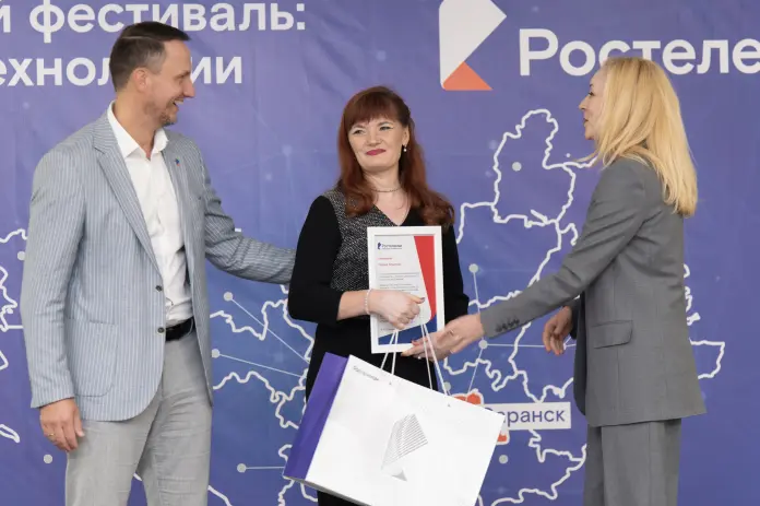 На цифровом фестивале состоялось торжественное награждение 95-тысячного абонента «Ростелекома», который недавно подключился к интернету по оптической технологии. Им стала Галина Жалнина из п.Николаевка. Женщина работает завхозом в детском саду и воспитывает двух дочерей, одна из них школьница, а другая студентка.