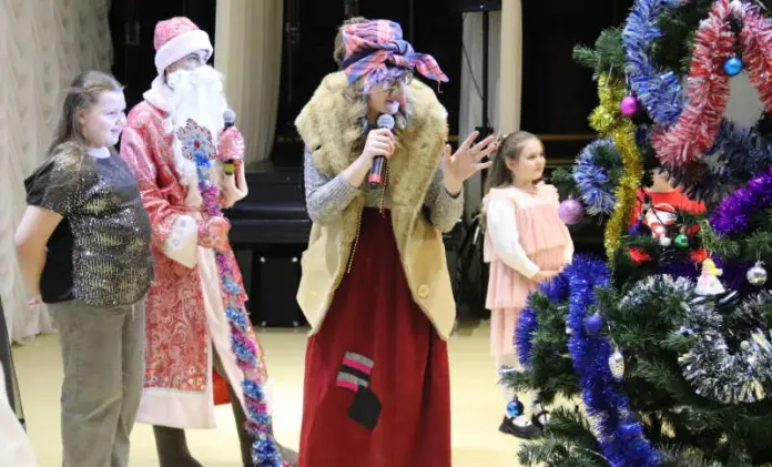 При этом на сцене юные исполнители сами оказались героями увлекательного зимнего представления. Они не только пели и играли на различных инструментах, но и участвовали в театрализованном увлекательном интерактивном представлении, водили хороводы вокруг нарядной ёлки вместе с Дедом Морозом и Снегурочкой, Бабой-Ягой, Лешим, Снеговиком и другими персонажами.