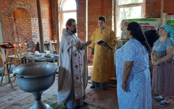 “Таинство Святого Крещения, посвящения Богу, приняли четыре человека, жители села. Они долго шли к этому, и решились только сейчас на этот шаг — принятия Христа в своё сердце именно во вновь создаваемом храме”, — рассказал протоиерей Виктор Хохлов, настоятель храма.