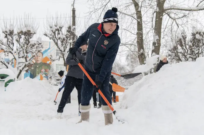 Глава Мордовии Артём Здунов в отличной физической форме. Вооружившись лопатой, он работал наравне с остальными: ритмично, уверенно, без лишних пауз. Заснеженная территория превращалась в расчищенную площадку, а вдоль тротуаров выстраивались аккуратные снежные валы.