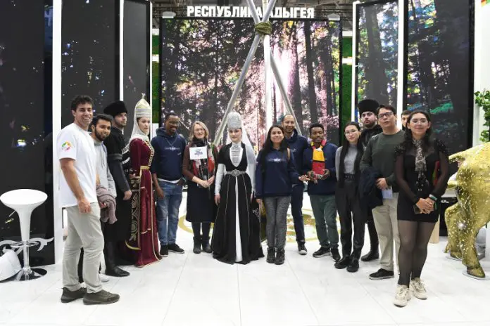 Гости приехали из Пакистана, Перу, Эфиопии и других стран. Вместе с Анастасией Звягиной они посетили пространство «Универмаг», где познакомились с традиционными русскими промыслами, а также стенды Москвы и Московской области, Ставрополья, Севастополя, Нижегородской, Волгоградской областей и других российских регионов. Так, на экспозиции Калмыкии иностранные гости примерили национальные костюмы, а Республика Адыгея показала, как танцевать лезгинку.