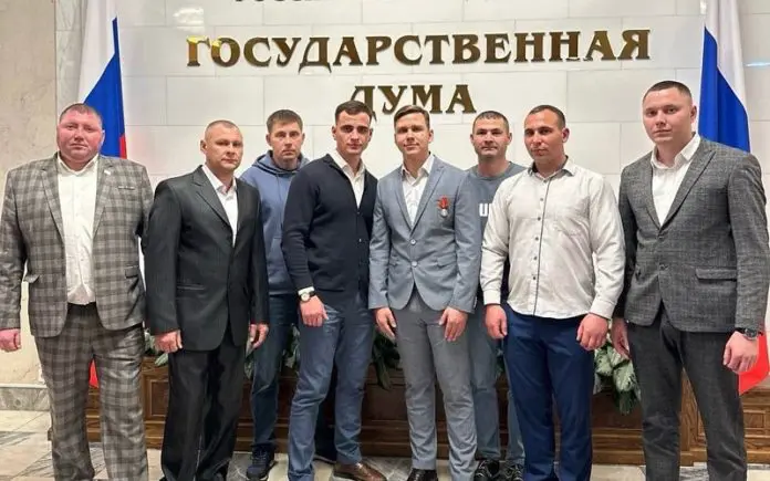 Герои встретились с председателем Комитета по безопасности и противодействию коррупции Василием Пискаревым и первым зампредом комитета Госдумы по туризму и развитию туристической инфраструктуры Николаем Валуевым. Василий Пискарев и Николай Валуев вручили защитникам благодарственные письма за мужество и героизм, проявленные в зоне специальной военной операции.