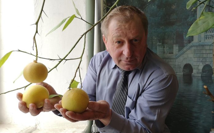 Уже в этом ноябре мне снова позвонил Юрий Александрович Тябин. А после звонка прислал и фотографию, на которой запечатлел на переместившемся с подоконника на пол деревце новый урожай из шести мандаринов. «Больше шести плодов на нем не бывает. В этом году они получились особо крупными, как апельсины, — говорит Юрий Александрович. — Из-за недостатка солнца цвет у плодов немного отличается от южных, вкус тоже не очень сладкий, но аромат… божественный. Когда разрезаешь плод, по комнате распространяется аромат, который ни в какое сравнение не идет с запахом магазинных фруктов».