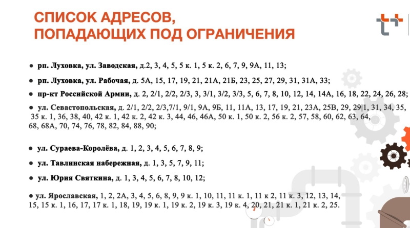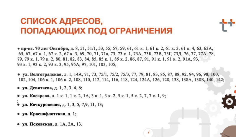 Под отключение горячей воды и тепла попадают дома по следующим адресам: