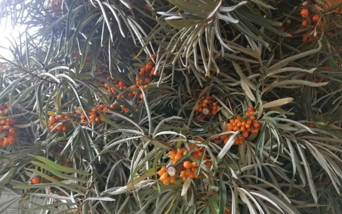 В плодах облепихи и в коре ветвей содержится серотонин, который играет важную роль в нормальной деятельности нервной системы.