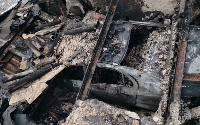 “Произошел хлопок и начался пожар, вследствие которого постройка полностью обрушилась. Внутри гаража находился автомобиль “Шевроле Авео” 2012 года выпуска”, — уточнили в МЧС Мордовии.