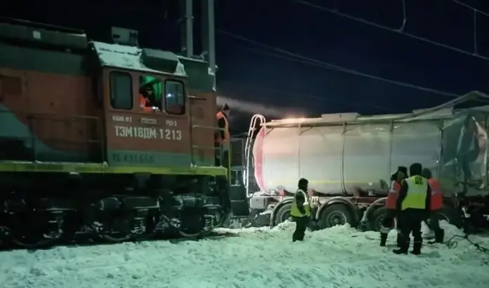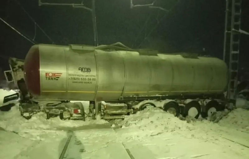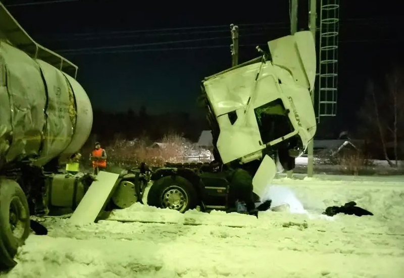 По предварительным данным, порожний автомобиль марки Scania выехал перед близко идущим поездом. Машинист применил экстренное торможение, но избежать столкновения не удалось. Водитель бензовоза госпитализирован к районную больницу.
