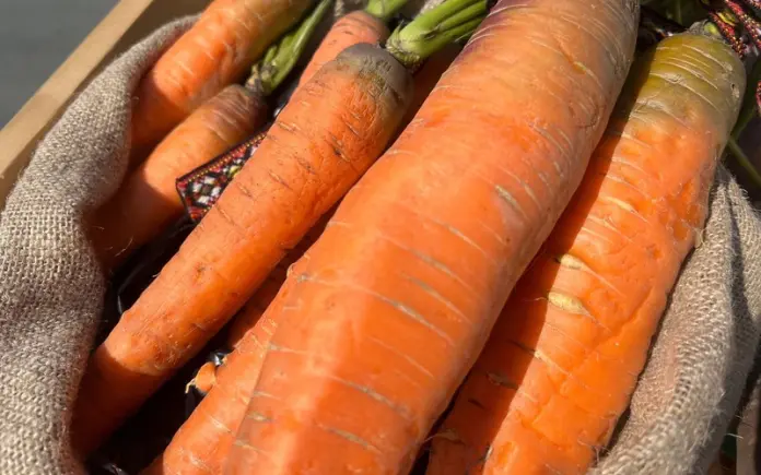 Еще один замечательный признак что пора убирать морковь — состояние ботвы. Ее нижние листики начинают желтеть. Но из-за этого не стоит сразу все выдергивать! Извлеките из земли одну-две штучки. Если на корнеплодах появились тоненькие белые корешки, то убирать можно, и даже нужно! Эти так называемые всасывающие корешки. Морковь выпускает их, когда готовится к цветению. А нам это нужно?