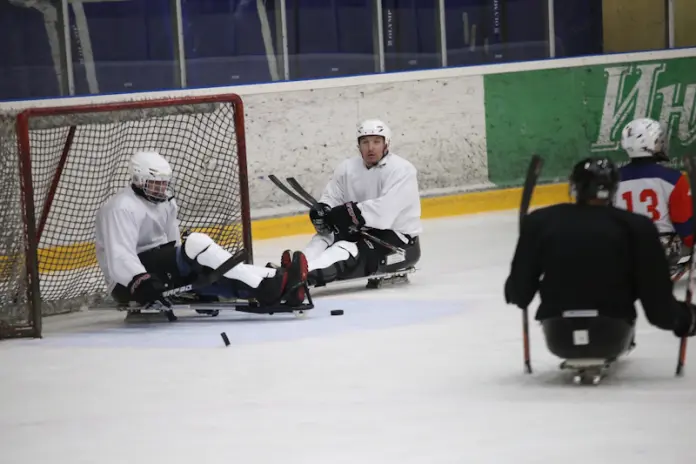 Действительно, глядя на детей, которые, преодолев все трудности, занимаются спортом, успешно выступают на соревнованиях, ветераны вдохновляются. Александр Дежнев – ветеран СВО, участник региональной программы «Герои среди СВОих», занимается адаптивным футболом, волейболом сидя, а теперь решил освоить и следж-хоккей.